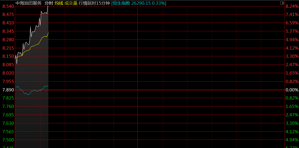 智通財(cái)經(jīng)APP獲悉,受國際原油價(jià)格影響,石油股全線走強(qiáng)。截至10時13分,中海油服(02883)漲8.11%,報(bào)價(jià)8.53港元,中海油(00883)漲3.19%,報(bào)14.86港元,中石油(00857)漲1.96%,報(bào)6.24港元,中石化(00386)漲0.72%,報(bào)7.01港元。