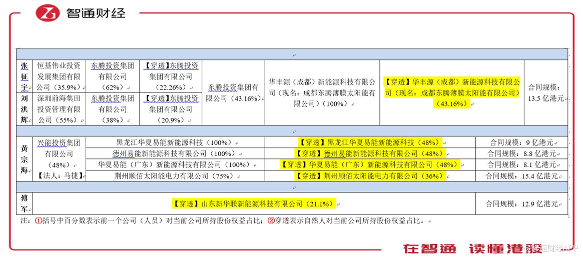 其它四個(gè)公司,經(jīng)過(guò)股權(quán)穿透后,發(fā)現(xiàn)控股公司為興能投資集團(tuán)有限公司(興能投資),實(shí)際受益人為黃宗海,不過(guò)興能投資的法人馬捷曾在漢能薄膜中擔(dān)任高管。