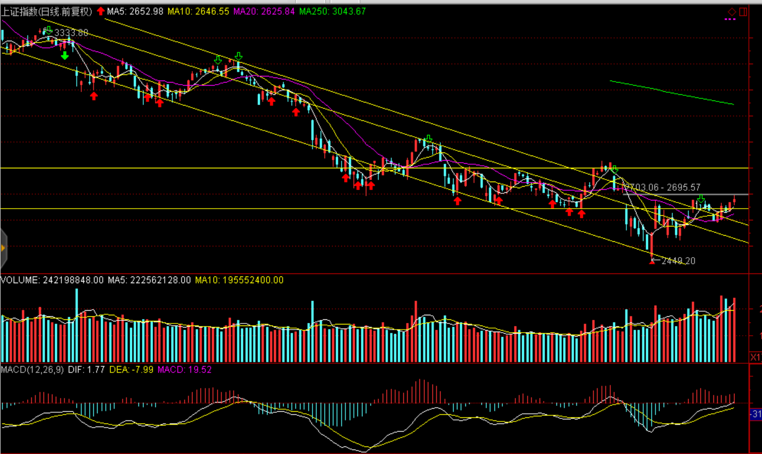 技術(shù)面:上周周線量?jī)r(jià)配合震蕩上揚(yáng)趨勢(shì),自10月19日見底以來運(yùn)行21個(gè)交易日,短期指數(shù)仍有反復(fù)上揚(yáng)需求,本周20周均線面臨壓力(滬綜指2700點(diǎn)一線、創(chuàng)業(yè)板1430點(diǎn)一線)。