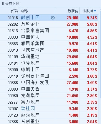 智通財(cái)經(jīng)APP獲悉,多地按揭利率出現(xiàn)松動(dòng)放款加速,內(nèi)房股集體上揚(yáng),截至15時(shí)43分,融創(chuàng)中國(guó)(01918)漲5.24%,報(bào)價(jià)25.1港元,萬科企業(yè)(02202)漲5.08%,中國(guó)恒大(03333)漲4.52%,華潤(rùn)置業(yè)(01109)漲4.04%,中國(guó)奧園(03883)漲3.37%,碧桂園(02007)漲2.3%。