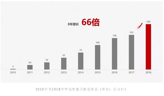 據(jù)了解,華為智能手機發(fā)貨量從2010年的300萬臺增長到2018年的2億臺,增長約66倍;從全球智能手機市場的“Others”躋身全球TOP3智能手機廠商,并在2018年第二季度和第三季度,成為全球第二大智能手機廠商,全球市場份額達到14.6% (*IDC全球智能手機市場份額,2018年第三季度)。