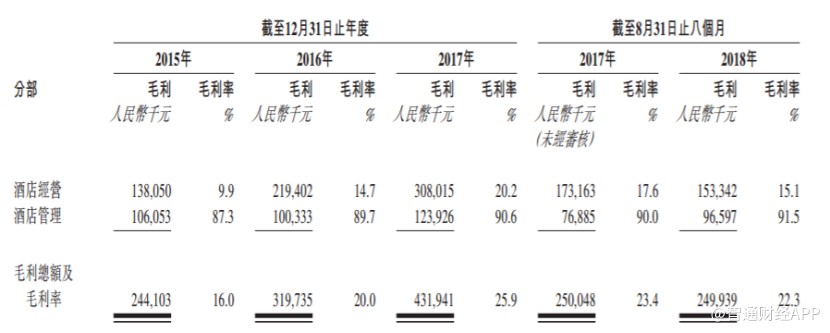 招股書顯示,截至2018年8月底,公司酒店經(jīng)營業(yè)務(wù)下?lián)碛?1家酒店,其中29家租賃酒店和2家自營酒店;公司酒店管理業(yè)務(wù)下?lián)碛?09家酒店,其中96家為全方位服務(wù)管理酒店及13家特許經(jīng)營酒店。