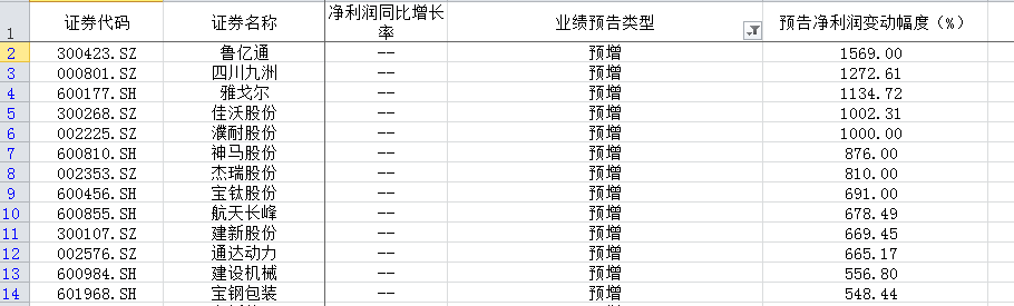 剔除非經(jīng)常性損益后,年報業(yè)績預增500%以上的上市公司如下: