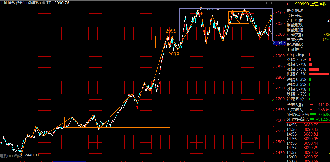 上證指數(shù)方面,這個(gè)位置的30分鐘中樞已構(gòu)建完成,調(diào)整隨時(shí)可以結(jié)束,方向選擇待定,關(guān)注30分鐘中樞上軌3125點(diǎn)壓力,30分鐘中樞下軌2968點(diǎn)支撐。就目前的市場(chǎng)情緒來(lái)看,傾向于向上突破中樞,構(gòu)建30分鐘的第三類(lèi)買(mǎi)點(diǎn)(突破中樞上軌后,回調(diào)段不破中樞上軌)。