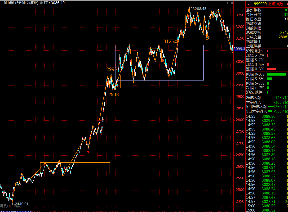 本周上證指數(shù)跌回了本輪上漲趨勢(shì)的第二個(gè)三十分鐘中樞,宣告了此次三十分鐘級(jí)別上漲趨勢(shì)的終結(jié)。本周指數(shù)若能突破3125點(diǎn),需關(guān)注上方五分鐘中樞的第三類賣點(diǎn)機(jī)會(huì)(3150點(diǎn)至3204點(diǎn)之間)。中線角度,2968點(diǎn)為強(qiáng)支撐位。