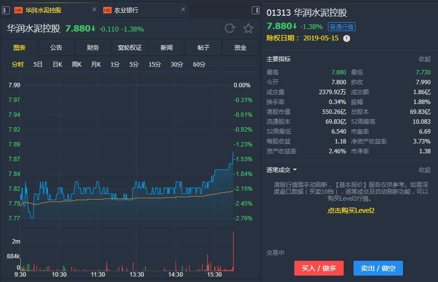 報(bào)告指出,華潤(rùn)水泥(01313)首季純利約14.9億港元,按年下跌17%,高出該行預(yù)期約13%,而由于單位成本下降,首季每噸毛利為157港元,也勝該行預(yù)測(cè),管理層預(yù)估今年南中國(guó)海的需求會(huì)維持穩(wěn)定甚至微升,而全年平均售價(jià)與去年比較變化不大。