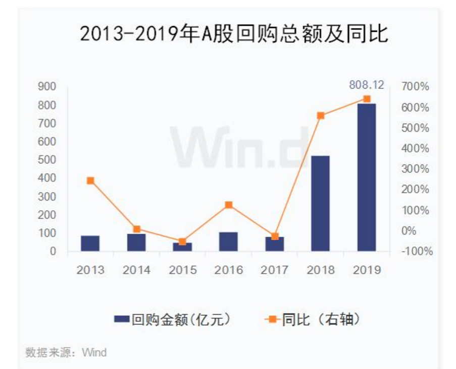 2019年初至今,兩市已有711家公司實(shí)施了回購計(jì)劃,總回購金額遠(yuǎn)超去年全年,達(dá)808.12億元,同比增長6.43倍,2018年同期回購總規(guī)模為108.76億元。