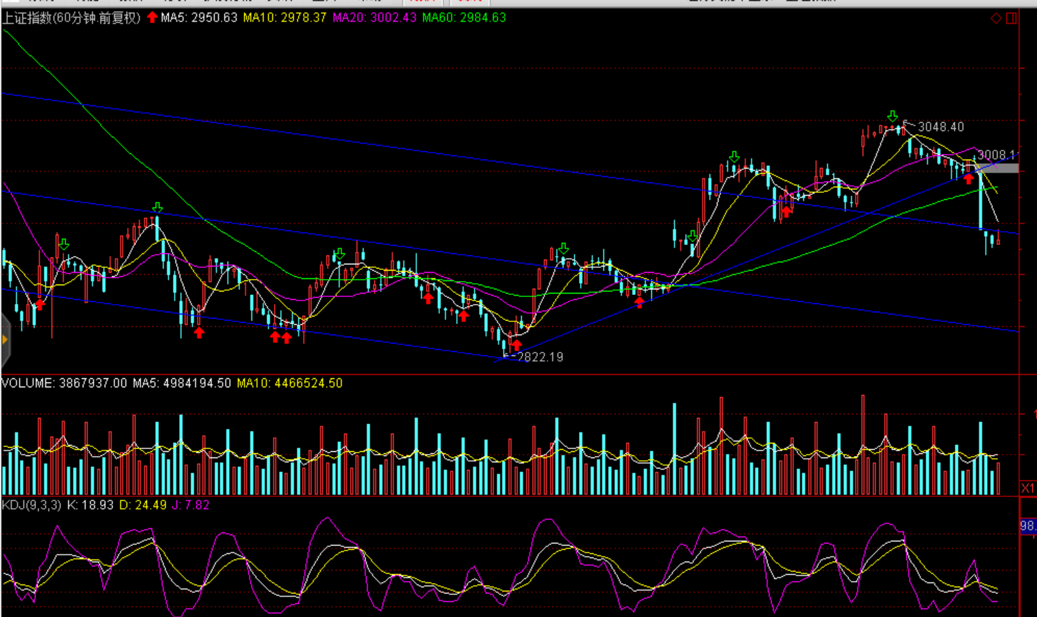 技術面:滬指跌破短期均線,半年線暫獲支撐,短期進入?yún)^(qū)間(2900--3000點)運行。預計今日企穩(wěn)、小幅反彈,20日均線構成反彈壓力。