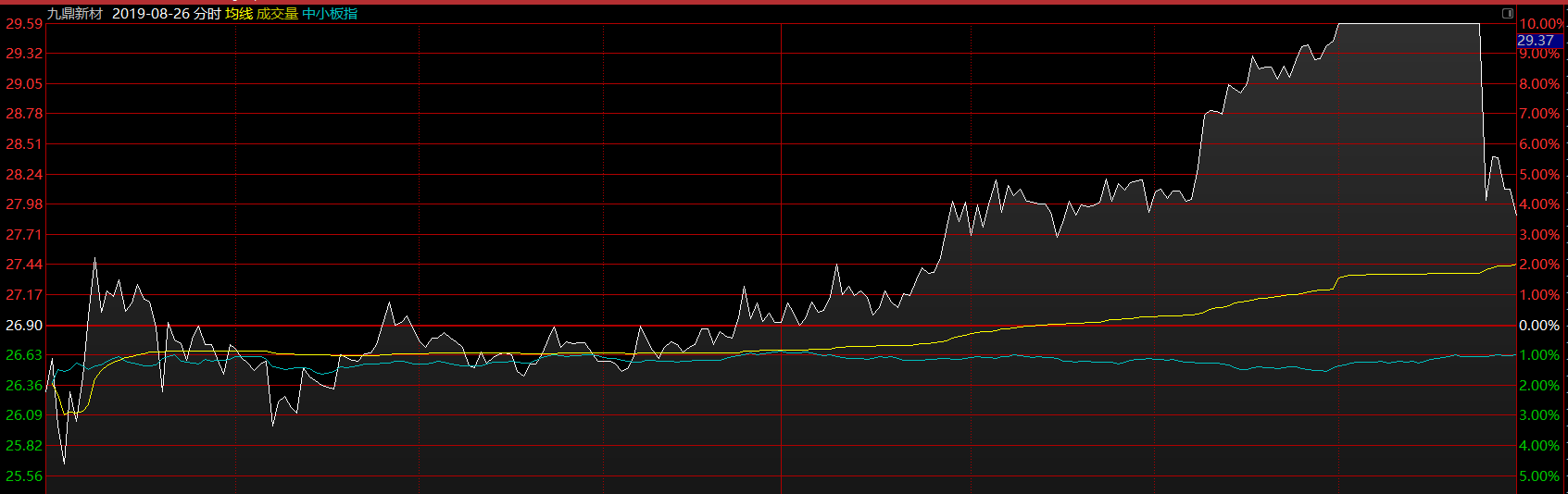今年的市場有個特征,總是因為某個人的一兩句話而大幅波動,好在市場對貿(mào)易摩擦的相關(guān)消息已逐漸變得不再敏感,消息次日市場跌幅也逐步減小。在周末貿(mào)易摩擦升溫消息刺激下,上周一大盤低開,但低開幅度遠小于預期,市場也沒有出現(xiàn)恐慌的情況。尤其是高標股九鼎新材,在前一交易日尾盤大幅分化的情況下,周一早盤僅僅微幅低開兩個點,可以說這是一個明顯的抄底信號:市場這里跌不下去。