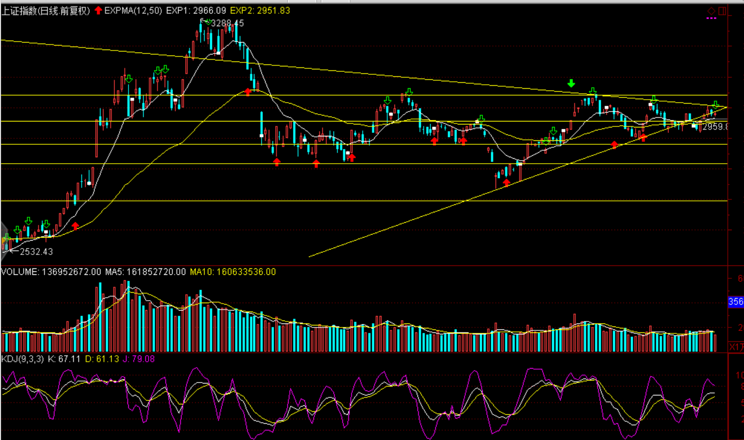 技術面:自9月16日以來的收斂三角形短期面臨方向性選擇,股指有望向上挑戰(zhàn)3020--3050點區(qū)間密集成交區(qū)。