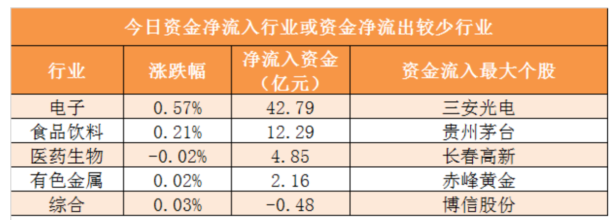 資金流向:28個申萬一級行業(yè)中,4個行業(yè)實現資金凈流入,其中電子行業(yè)凈流入42.79億元居首。