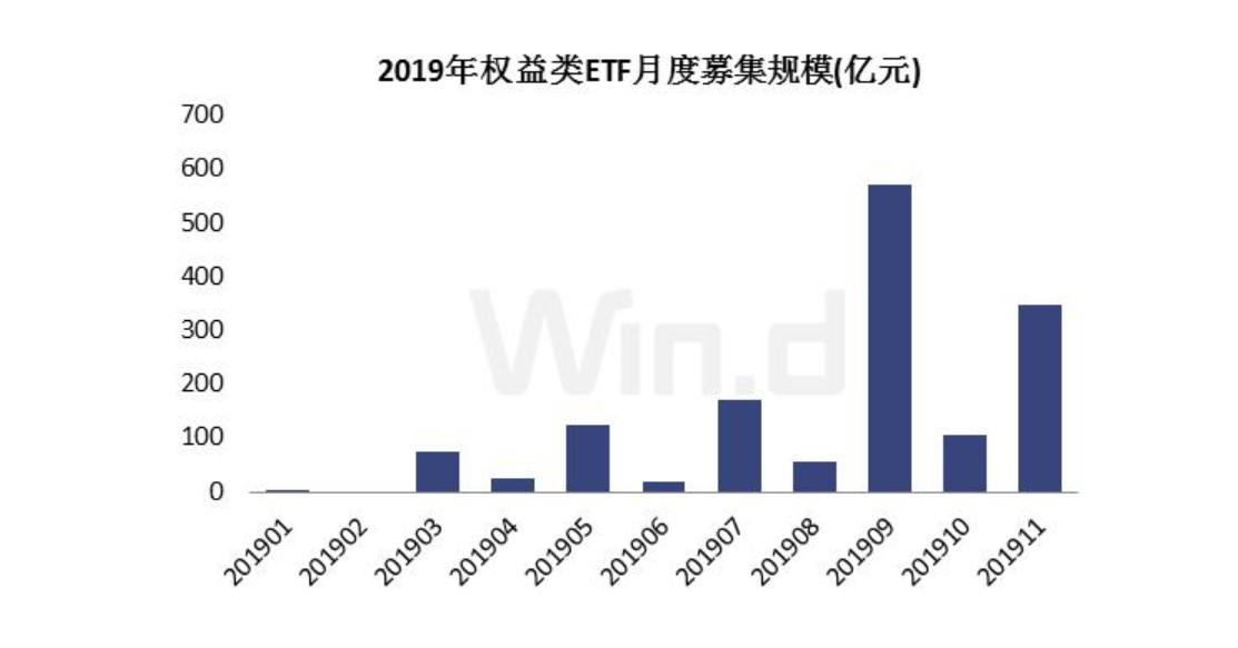 月度數據來看,今年9月權益類ETF募集規(guī)模最大,達571.98億元;其次就是11月,目前11月尚未過半,權益類ETF募集規(guī)模已達348.84億元。