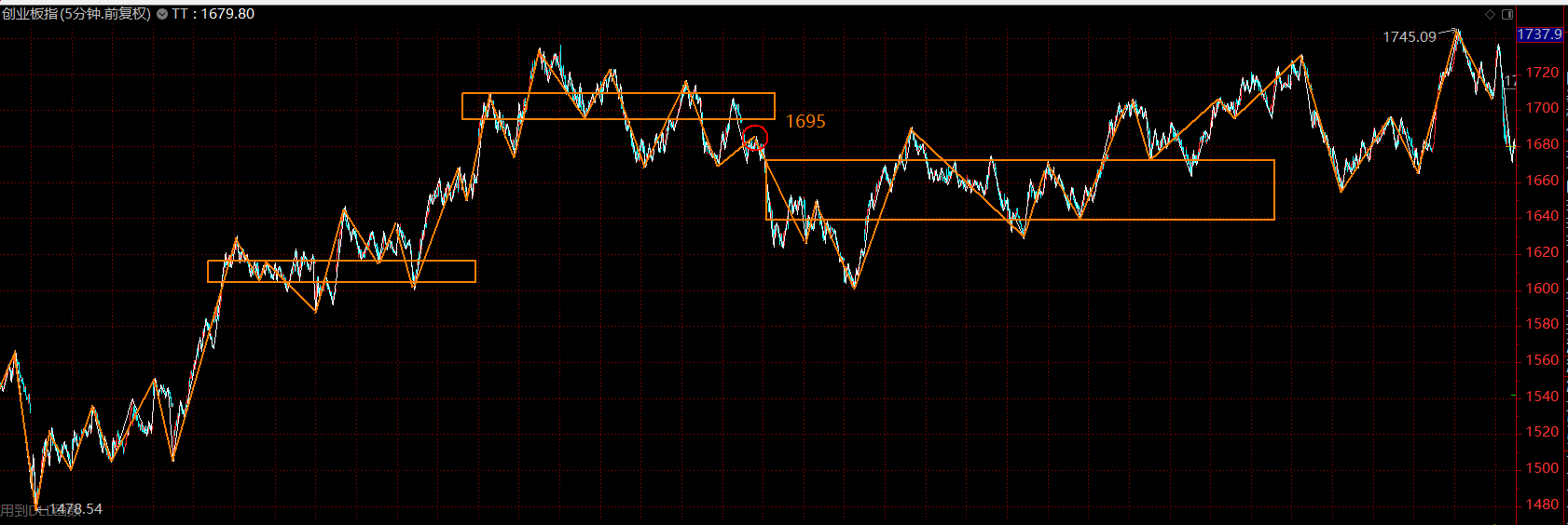 創(chuàng)業(yè)板這里則樂觀的多了,前高附近的中樞震蕩形態(tài),按歐奈爾的習(xí)慣來說,這個(gè)構(gòu)型叫“杯柄”,一種強(qiáng)勢(shì)形態(tài)??申P(guān)注1600-1640的支撐區(qū)域,適當(dāng)回補(bǔ)倉(cāng)位。從兩個(gè)市場(chǎng)的比較來看,依舊傾向于后續(xù)大行情集中在創(chuàng)業(yè)板,有點(diǎn)類似2013年,創(chuàng)業(yè)板多頭走勢(shì),主板還在探底。