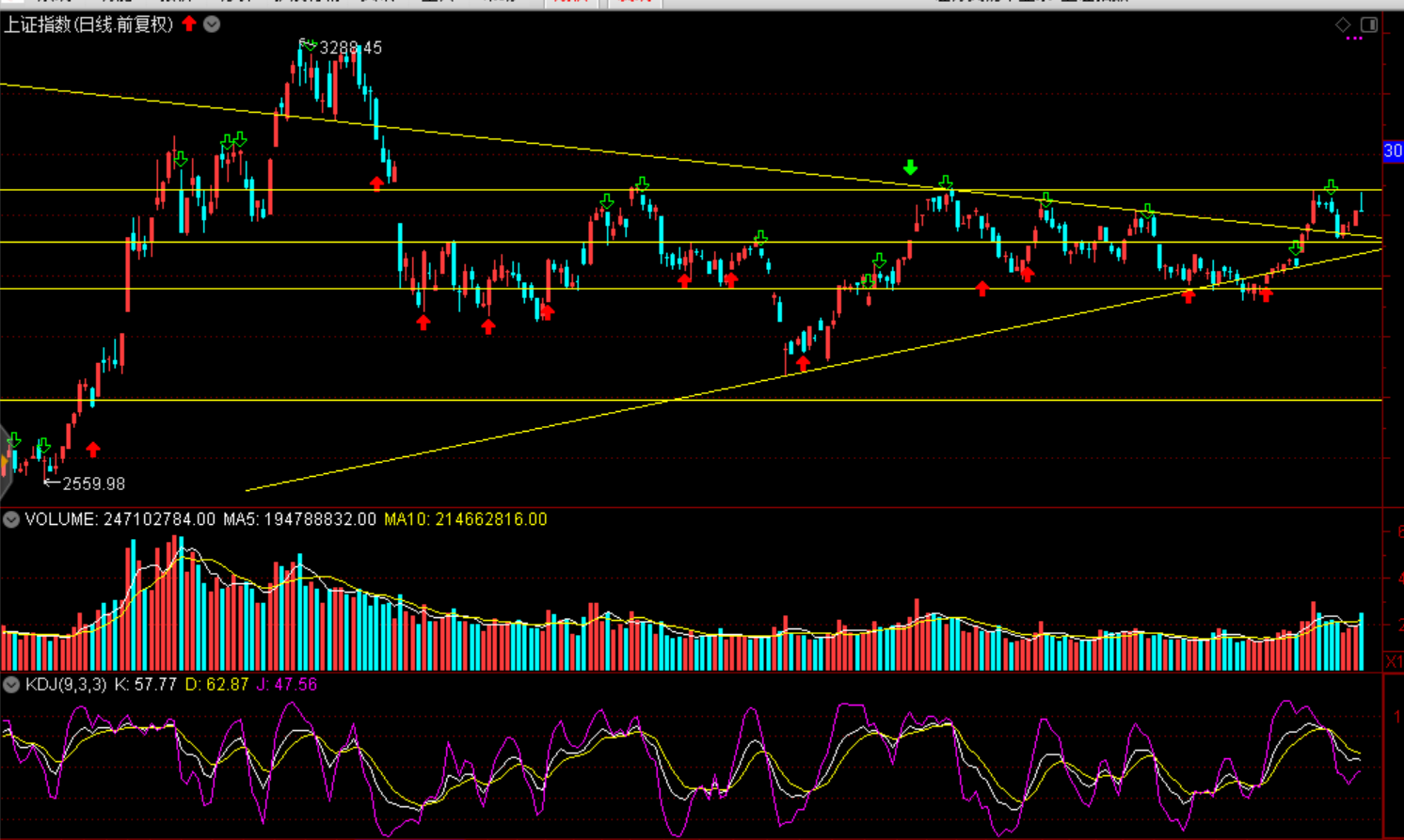 操作建議:股指短期受阻前期高點(diǎn),技術(shù)面有形成雙頭之憂;本周面臨再次面臨階段調(diào)整,滬綜指回探,考驗至9月16日以來收斂三角形上軌支撐,創(chuàng)業(yè)板回探1726點(diǎn)一線支撐。謹(jǐn)慎本周股指震蕩回落,周陰報收。本周操作以防御為主,降低倉位、棄高就低。