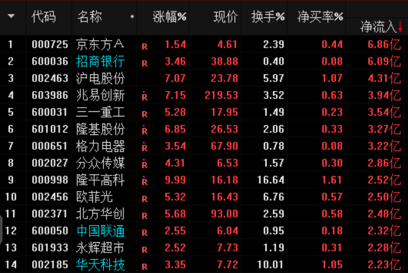 周四兩市資金凈流入居前公司:其中隆平高科(000998)龍虎榜成交顯示機(jī)構(gòu)席位大局買入。