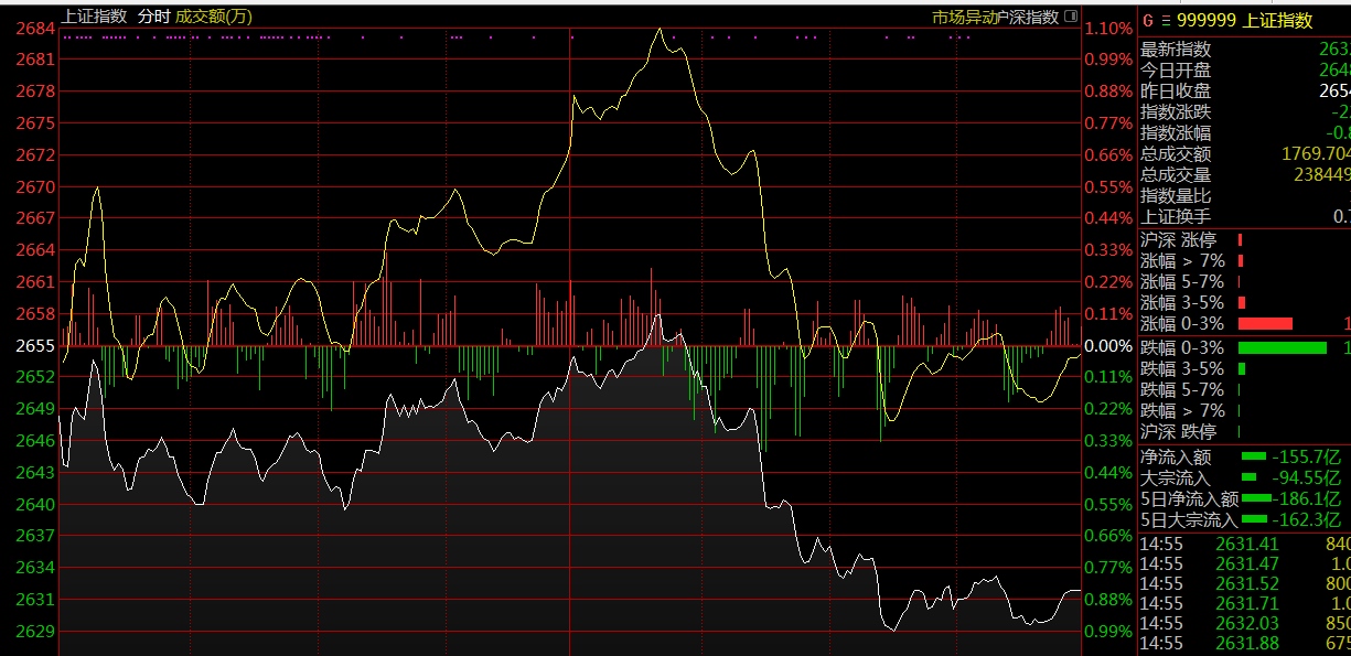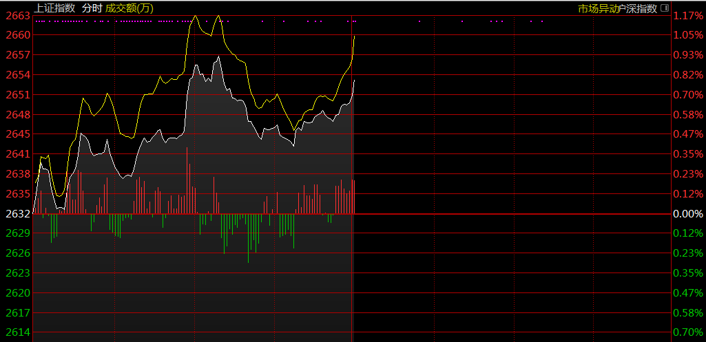 上證指數(shù)報(bào)2650點(diǎn),漲0.69%;深證成指報(bào)7929點(diǎn),漲0.26%;創(chuàng)業(yè)板指數(shù)報(bào)1390點(diǎn),漲0.35%。