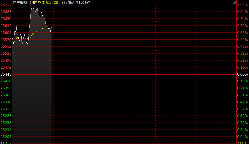 10月15日,恒生指數(shù)開盤跌0.46%,報(bào)25683.59點(diǎn)。國(guó)企指數(shù)跌0.79%,報(bào)10218點(diǎn)。紅籌指數(shù)跌0.75%,報(bào)4125點(diǎn)。大市盤前成交21.42億港元。
