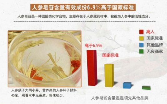 宋總告訴記者,“紫鑫”人參全身是寶。參頭,祛熱解毒;參身,用于養(yǎng)生食用,可一季度食用3-4次,1人食用每次5g人參量(大約相當(dāng)于半支‘紫鑫’人參);根部,功效與人參非常相似,但更溫和,適合癥狀較輕的人群食用。而且“紫鑫”人參種植時(shí)間至少5年,皂苷高達(dá)52種,有效成份含量6.9%,活性成分更高,功效更強(qiáng)。