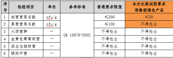 如果衛(wèi)生巾中的微生物指標存在問題,會增加女性月經(jīng)期婦科炎癥的風險,危害人體健康,我國《一次性使用衛(wèi)生用品衛(wèi)生標準》(GB15979-2002)中對致病微生物有嚴格要求。本次比較試驗參照《綠色產(chǎn)品評價 紙和紙制品》(GB/T35613-2017)中微生物限值最嚴格的消毒級要求(見下表)考核樣品,結果顯示,35款樣品均可以達到消毒等級的要求。