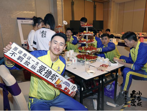參加球迷見面會的排球運動員們在見到香酥可口的小龍蝦后,都忍不住立馬品嘗,對龍蝦的味道是贊不絕口,并主動和小龍蝦共同合影留戀。