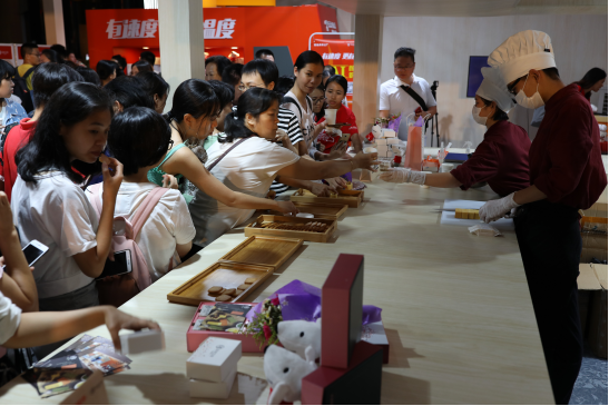 記者在快閃店的手工烘焙區(qū)看到了一塊塊手工鳳梨酥精心制作的全過程。隨著它的“出爐”,濃郁香味吸引來了不少市民圍觀。在試吃區(qū)里,市民品嘗后都紛紛贊不絕口,“好吃,真的好吃,餡料也很足!”除此之外,店內(nèi)還設(shè)置了愛的溫度、娃娃機(jī)、顏值打折AI人臉識別游戲等互動活動,也吸引了眾多市民的熱情參與和圍觀。