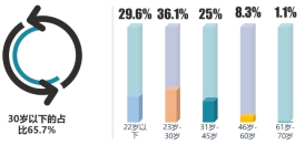 本次調研中,連鎖餐飲消費者中,23歲-30歲是主要消費者,占比36.1%,30歲以下的消費者占比為65.7%。52.8%的受訪者學歷為高中/中專/技校及以下 。