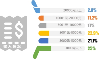 本次調研中,公司一般職員的比例最高,為27.7%,其次是學生,占比為18.3%。53.9%的受訪者其個人月收入超過5000元。