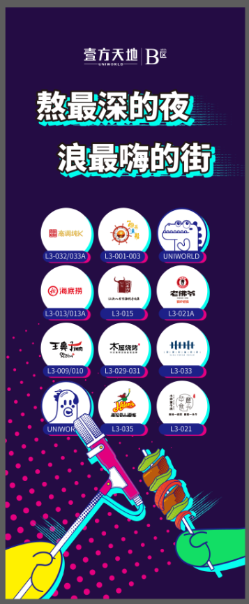 購物中心是城市的精華,也是生活方式的容器。B區(qū)洞察了當(dāng)代年輕人的這一消費習(xí)慣,發(fā)力“夜經(jīng)濟(jì)”,精心打造夜市街區(qū)——嗨FUN宵夜街。