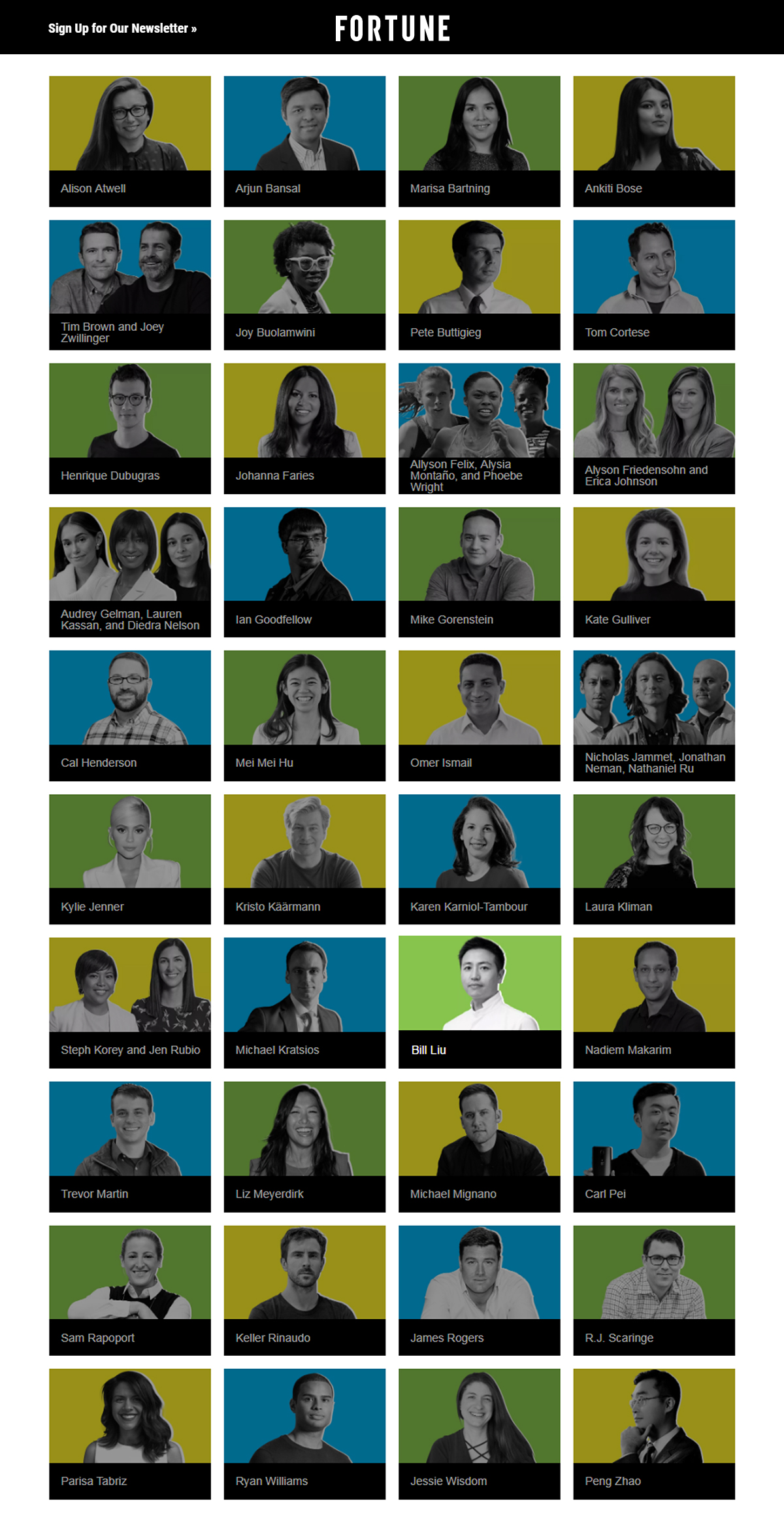 《財富》雜志“全球40位40歲以下商界精英”排行榜是《財富》評選的年度最具影響力年輕領袖榜單,旨在挖掘全球范圍內年輕的杰出創(chuàng)新者、價值締造者和變革者。Facebook創(chuàng)始人兼CEO馬克·扎克伯格(Mark Zuckerberg)、騰訊創(chuàng)始人兼CEO馬化騰、美團點評聯(lián)合創(chuàng)始人兼CEO王興、字節(jié)跳動創(chuàng)始人兼CEO張一鳴、Airbnb聯(lián)合創(chuàng)始人兼CEO布萊恩·切斯基(Brian Chesky)等一眾知名政商精英,都曾入選該榜單。