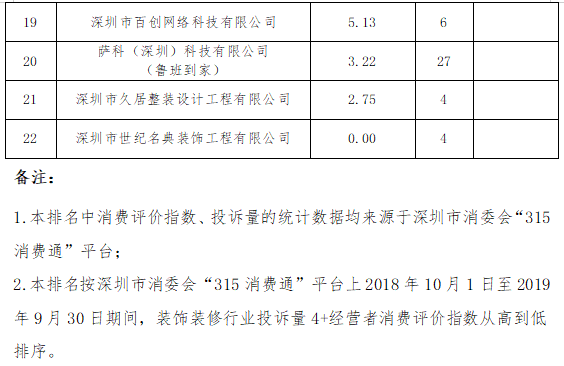 此外,本次公布的深圳市消委會(huì)裝飾裝修行業(yè)消費(fèi)評(píng)價(jià)指數(shù)排行榜中,深圳新家生活科技服務(wù)有限公司(9.00)、深圳市百創(chuàng)網(wǎng)絡(luò)科技有限公司(5.13)和薩科(深圳)科技有限公司(魯班到家)(3.22)3家經(jīng)營(yíng)者未建立投訴處理便捷通道,投訴處理效率低于其他經(jīng)營(yíng)者,增加了消費(fèi)者維權(quán)成本。