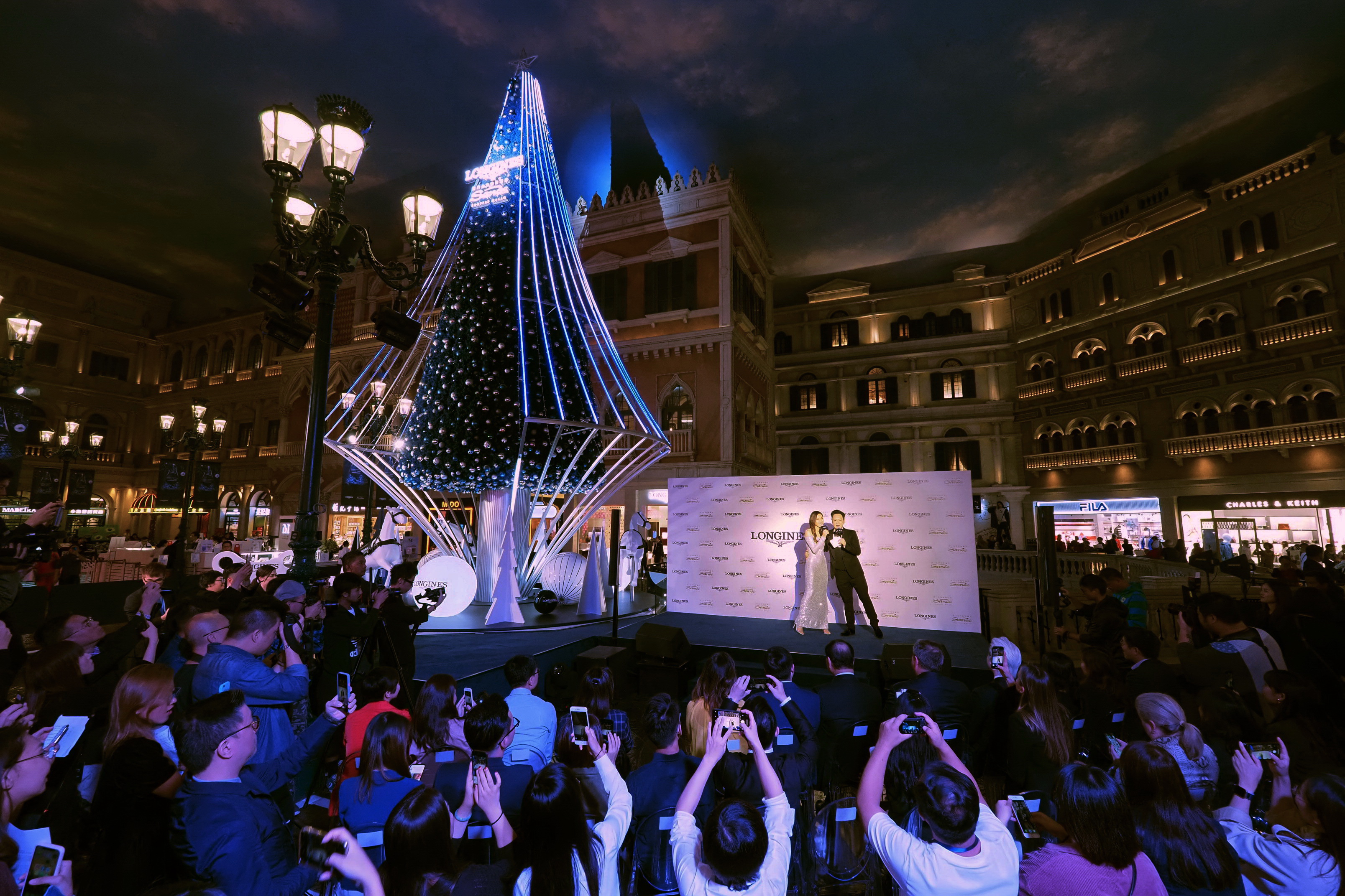 亮燈儀式于威尼斯人購物中心圣馬可廣場舉行,影視明星鐘嘉欣受邀出席,并與浪琴澳門副總裁鄭美齡、金沙中國有限公司零售市場推廣副總裁Rita Simonetta及金沙中國有限公司商場管理部總監(jiān)梁俊強一同啟動高達(dá)13米的藍(lán)色菱形圣誕樹底部的音樂盒裝置。