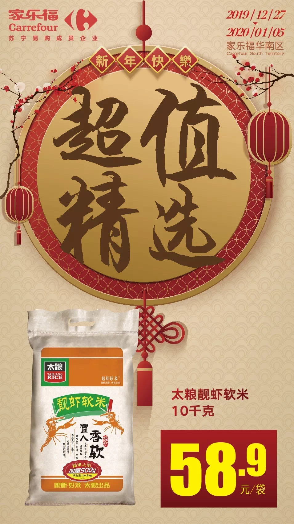深圳新聞網(wǎng)2019年12月27日訊 俗話說“民以食為天”。一碗好米飯,能頂半邊天。要過年了,家里總得備點(diǎn)好米呀!12月27日至1月5日,家樂福華南區(qū)特推太糧靚蝦軟米,驚爆價(jià)僅需58.9元/袋。吃貨們,囤起!