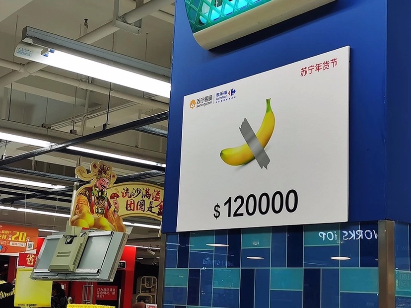 售價12萬美元的香蕉你見過嗎?反正 小編 今天在家樂福 華南區(qū)門店 見到了!這可是從美國巴塞爾藝術(shù)展 引進的行為藝術(shù)。 獲此靈感,蘇寧版“天價年貨” 應(yīng)運而生!