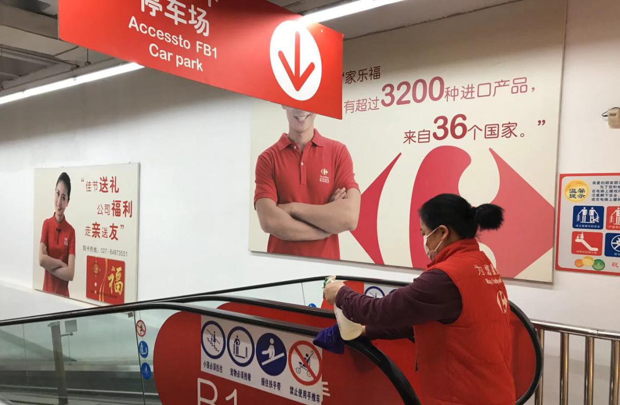 為確保健康、安心的購物環(huán)境,家樂福加強(qiáng)各項(xiàng)安全防范措施,員工每日測體溫戴口罩上崗,地面、自動扶梯把手、購物車、購物籃每2小時(shí)消毒一次,廁所每1小時(shí)消毒一次。以武漢為例,春節(jié)期間門店清潔消毒已消耗1000瓶消毒液、700瓶洗手液,員工嚴(yán)格遵守口罩更換程序,共消耗近20000個口罩。