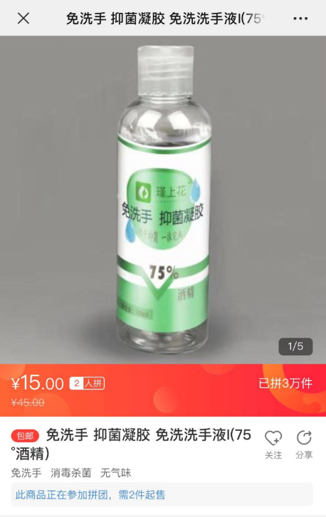 春節(jié)假期進入尾聲后,有少部分工廠陸續(xù)復(fù)工。其中有一家來著于蘇寧“拼工廠”的河北企業(yè)與蘇寧拼購?fù)献鳎_足馬力,全力生產(chǎn)酒精含量為75%的免洗手抑菌凝膠。據(jù)蘇寧拼購相關(guān)負責人介紹:“蘇寧將根據(jù)最近疫情消費數(shù)據(jù)指導(dǎo)該‘拼工廠’生產(chǎn),預(yù)估未來幾天銷量,讓工廠效率達到最大。”據(jù)悉,該款“75%免洗手抑菌凝膠”商品僅2月2日上半日便拼出3萬單。河北“拼工廠”負責人表示,目前產(chǎn)能能達到日均20萬瓶。