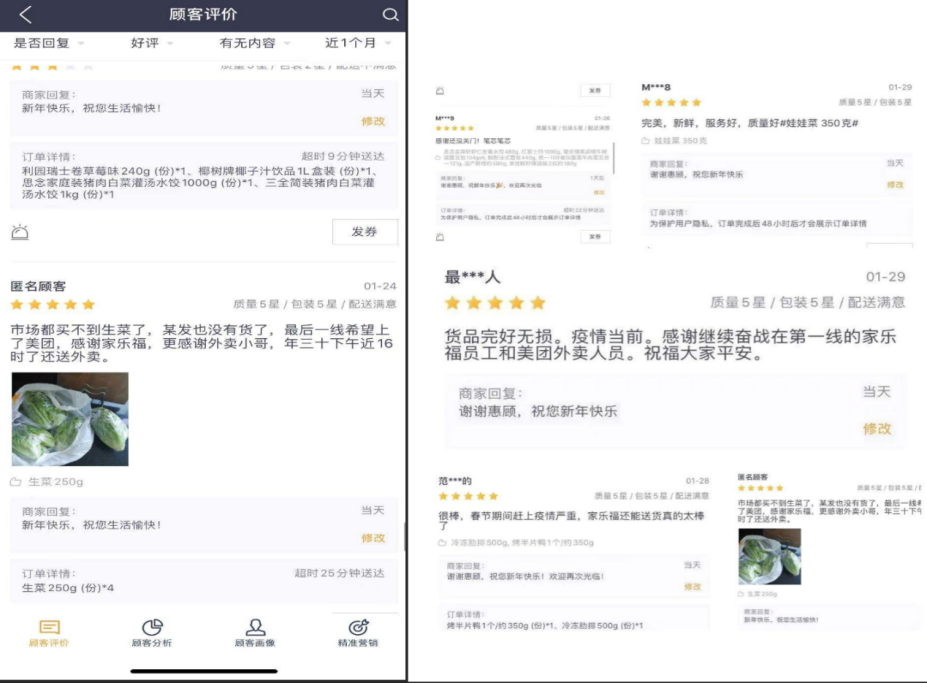 “因新型肺炎病毒的爆發(fā),從大年初二開(kāi)始,蔬菜、肉類(lèi)等民生用品成為了市民門(mén)的‘搶手貨’,家樂(lè)福門(mén)店的外賣(mài)平臺(tái)配送新訂單突然增長(zhǎng),單日訂單量突破上百,很快又到幾百,甚至更多……單個(gè)訂單的商品種類(lèi)多至120件,訂單價(jià)格超過(guò)3000元,每天每個(gè)門(mén)店平均需要撥打300通以上的電話?!奔覙?lè)福華南區(qū)電商經(jīng)理黃福填告訴我們,面對(duì)每天逐漸增長(zhǎng)的訂單量,自己既是喜悅又是焦慮。為了讓更多顧客享受快捷方便的家樂(lè)?!芭渌偷郊摇睒I(yè)務(wù),許多門(mén)店的伙伴跟他一樣主動(dòng)放棄春節(jié)假期,堅(jiān)守一線。