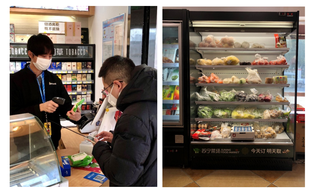 1月24日至2月8日期間,家樂福全國51個城市209家門店累計提供蔬菜11000噸,豬肉1340噸,水果3800噸,到家業(yè)務(wù)訂單量增長3.5倍;蘇寧小店訂單量同比增長419.62%,其中“線上下單,到店自提”的蘇寧菜場訂單量更是暴增超650%。
