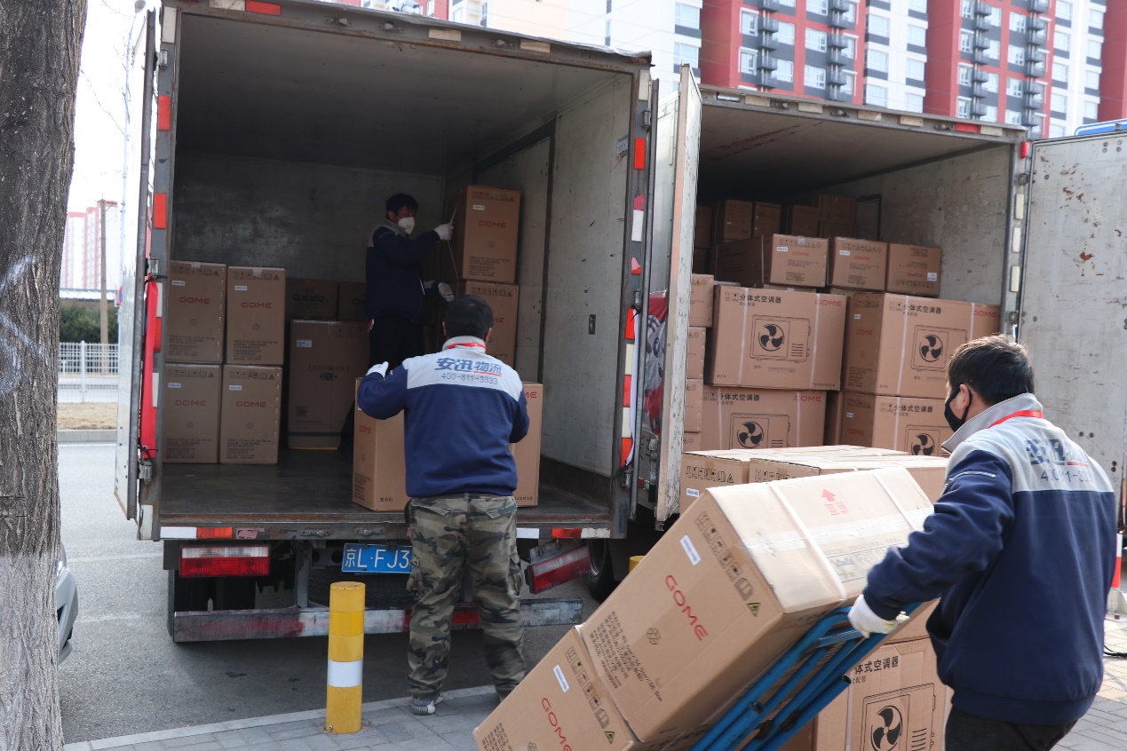 一大早,天剛剛亮,國美北京安迅物流金盞物流園門前2輛物流車又開始了忙碌的物資搬運工作。國美送裝工程師徐海亮說:“今天的配送時間緊任務重,大家天沒亮就來到物流園,生怕耽誤了發(fā)車。我們都希望為北京當?shù)氐囊咔榉揽刈鳇c事。”他參與了前日的第一批物資配送工作,又自告奮勇地加入了此次送裝工作。經(jīng)過2小時的車程,國美送裝工程師們又開始投入了緊張的家電安裝工作中,他們不但將每一臺電器安裝到位,還反復調(diào)試并詳細講解使用方法。當天下午2點,捐贈的物資全部安裝完畢。