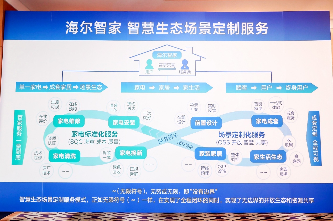 第四是全周期服務(wù)。海爾智慧成套定制服務(wù)以送安同步、管家交互、回收拆廢、以舊換新、價值落地,為用戶提供全周期服務(wù),同時通過服務(wù)交互中獲取的用戶需求引導(dǎo)服務(wù)、模式乃至品牌迭代升級,從而實現(xiàn)服務(wù)生態(tài)的良性循環(huán)。