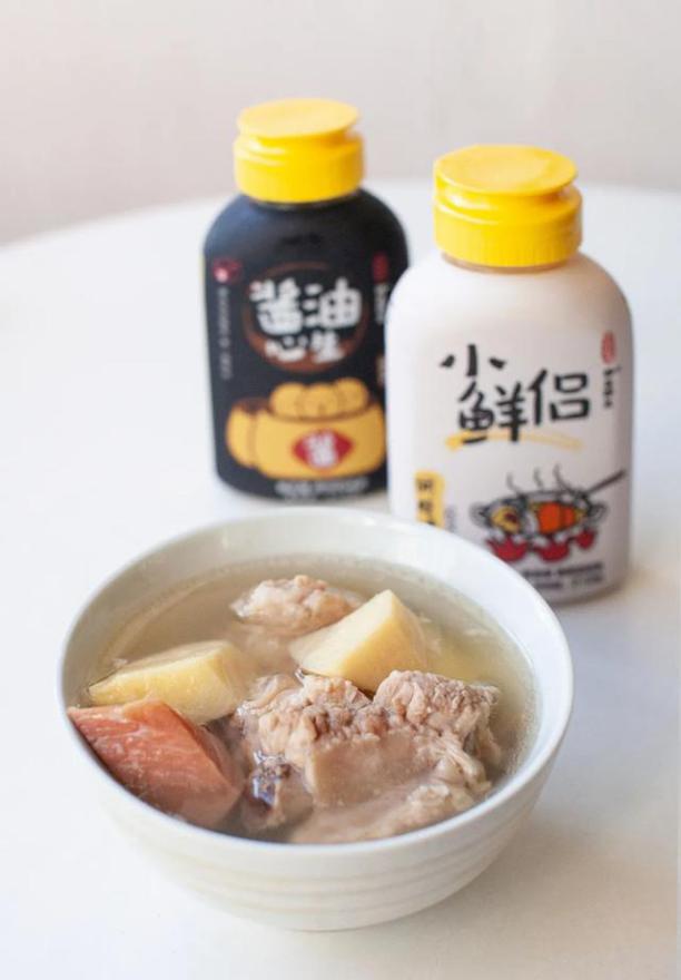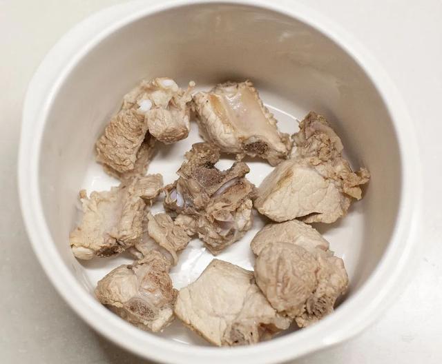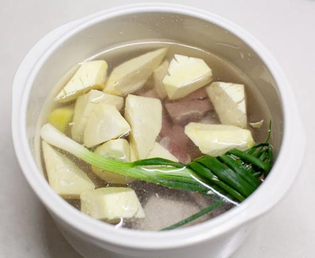 2.把排骨、火腿、干貝、春筍、姜、蔥放入鍋中,加入小鮮侶,加入涼水,放入隔水燉鍋中,燉2.4小時,即可出鍋。