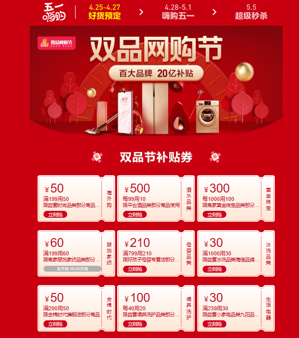 見圳客戶端·深圳新聞網(wǎng)2020年4月29日訊 貫穿整個五一假期的“雙品網(wǎng)購節(jié)”已經(jīng)開啟,蘇寧、阿里等電商平臺紛紛上線促銷活動。消費補貼怎么領(lǐng),有哪些值得買的品質(zhì)好物,還有哪些活動值得期待?消費回暖,買買買的熱情迎來釋放。