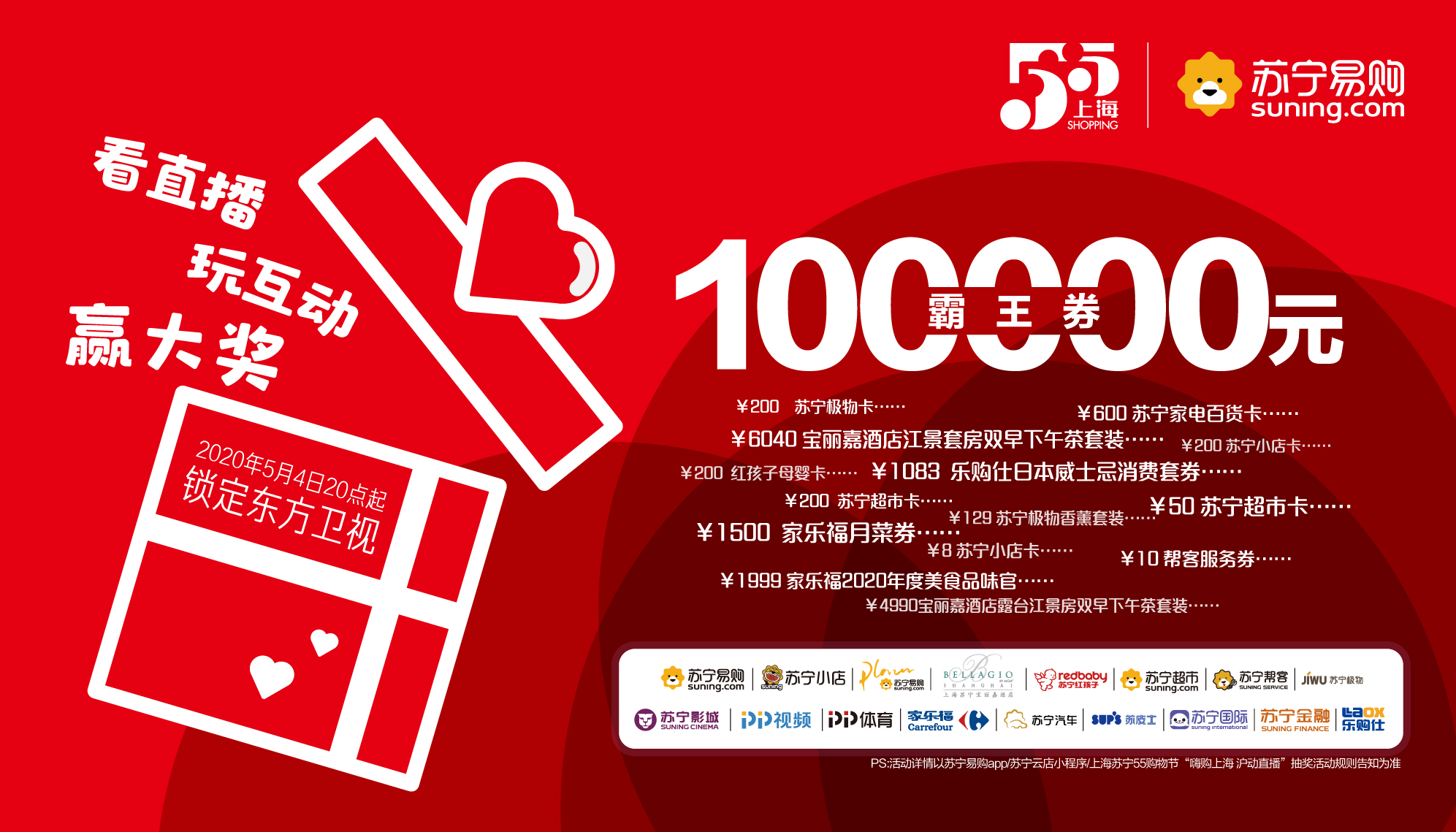 5月4日晚,東方衛(wèi)視將面向全球,舉辦“2020五五購(gòu)物節(jié)”全球大直播。蘇寧易購(gòu)作為此次“五五購(gòu)物節(jié)”的主力企業(yè),屆時(shí),將邀請(qǐng)眾多嘉賓一同前往直播間,分享蘇寧“五五購(gòu)物節(jié)”的必囤清單。
