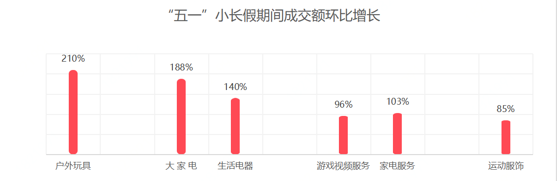 “五一”小長(zhǎng)假尤其對(duì)河南、河北、安徽等中部省份的線上消費(fèi)拉動(dòng)作用更強(qiáng)。由于一線城市的線上消費(fèi)趨于日?;藗兌嗤獬龌顒?dòng),用親近大自然、戶外活動(dòng)的方式度過假日。同時(shí),一部分在大城市里工作的人員也在假日返回老家,帶動(dòng)了中部省份的線上消費(fèi)。