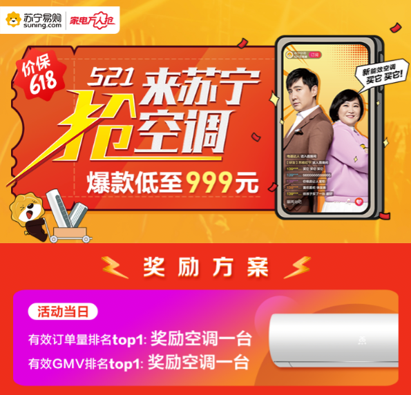 此外,此次搶空調(diào)期間,蘇寧還將以“萬人帶貨王”的帶單獎勵活動,依托蘇寧推客、蘇小團等社交平臺,邀請廣大網(wǎng)友為空調(diào)帶貨。多款熱銷空調(diào)均設(shè)有高傭金獎勵,實際帶單數(shù)量最多和帶單數(shù)額最高的“帶貨王”均可獲得1臺空調(diào)作為獎勵。