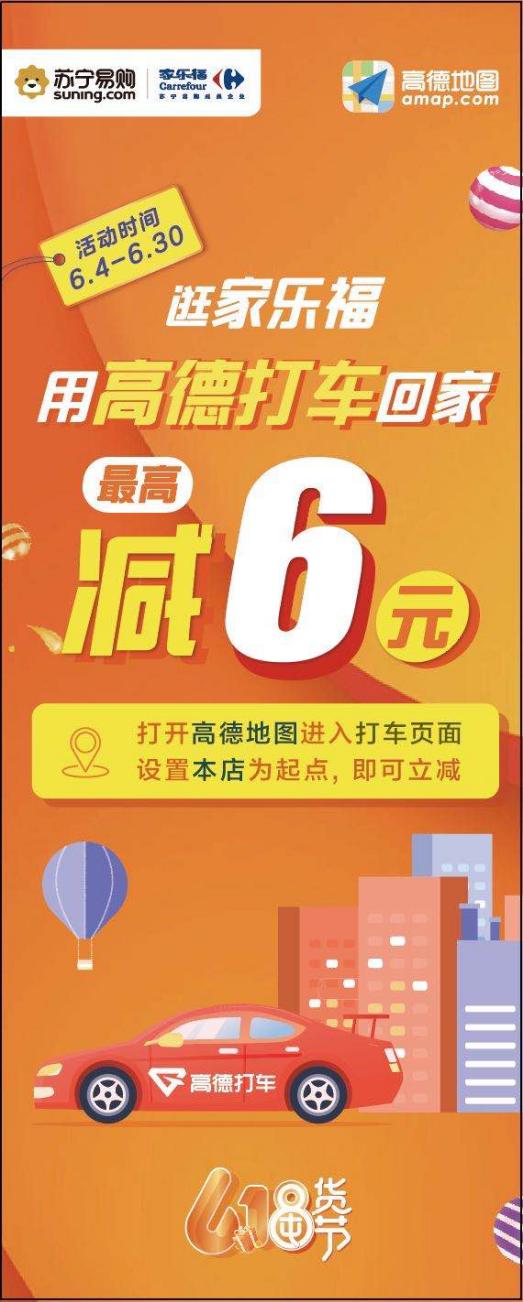晚上8點(diǎn)40分,下班后趕來購物的王小姐提著滿滿三大袋戰(zhàn)利品準(zhǔn)備回家。她拿出手機(jī)打開高德地圖APP,選擇“家樂福南方店”為起點(diǎn),預(yù)估車費(fèi)顯示隨機(jī)立減最高6元,同時(shí)領(lǐng)取了家樂福138元線上專享新人禮包。