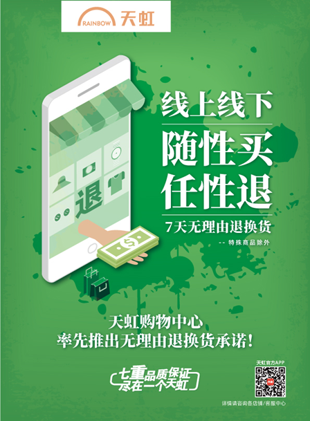 今年4月,為了營造溫暖舒心的消費環(huán)境,深圳市消費者委員會發(fā)起“線下無理由退貨承諾”,鼓勵深圳線下實體店參與,改善居民消費體驗,增強居民消費信心。天虹積極響應號召,作為深圳首批“線下無理由退貨”的實體店參與并向廣大消費者作出服服承諾,也將“承諾”推廣至全國。值得一提的是,為了讓購物中心的消費者能共享,天虹首次嘗試在購物中心業(yè)態(tài)也深耕這項服務,竭力滿足顧客需求。