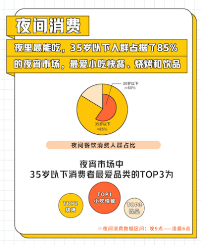 夜間消費(fèi)在周末餐飲消費(fèi)中備受年輕人青睞?!?020周末餐飲堂食消費(fèi)趨勢(shì)洞察》顯示,35歲以下群體是周末夜間消費(fèi)的主力,占比近九成,且最愛小吃快餐、燒烤和飲品三大品類。