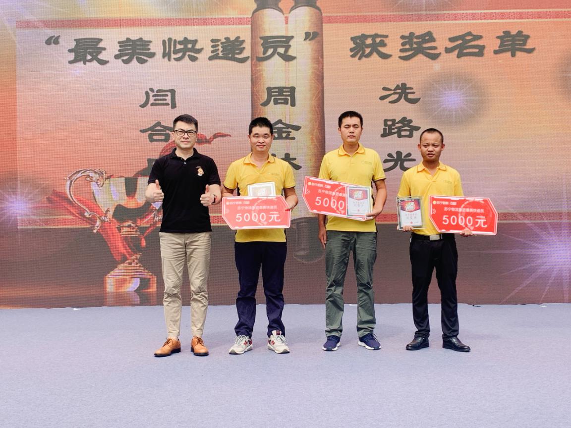 2020年蘇寧物流集團升級快遞員節(jié)獎勵基金,成立5000萬合伙人獎勵基金。日常對業(yè)績突出合伙人進行包裹派費獎勵,每年快遞員節(jié),重點表彰年度經(jīng)營業(yè)績突出的合伙人及團隊。2020年“最美快遞員”評選活動,全集團共評選出100名“最美快遞員”,粵港蘇寧共3名入選。今年上半年,粵港蘇寧物流涌現(xiàn)出了一批優(yōu)秀的一線員工,不畏疫情,始終堅守在自己的崗位上,為顧客帶去方便,我們評選出了10名地區(qū)級優(yōu)秀快遞員。其中給與“最美快遞員”每人5000元獎勵金及榮譽證書、“優(yōu)秀快遞員”每人500元獎勵金及榮譽證書,同步給全體快遞員“快遞員錢包充值100元”,送去節(jié)日的問候。