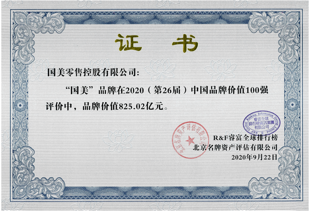 見圳客戶端·深圳新聞網(wǎng)2020年9月24日訊 日前,睿富全球排行榜資訊集團(tuán)與北京名牌資產(chǎn)評估有限公司發(fā)布了2020(第26屆)“中國品牌價值100強(qiáng)”研究報告,國美入選“中國品牌價值100強(qiáng)”榜單,這也是國美連續(xù)14年位居該榜電器零售行業(yè)第一名。