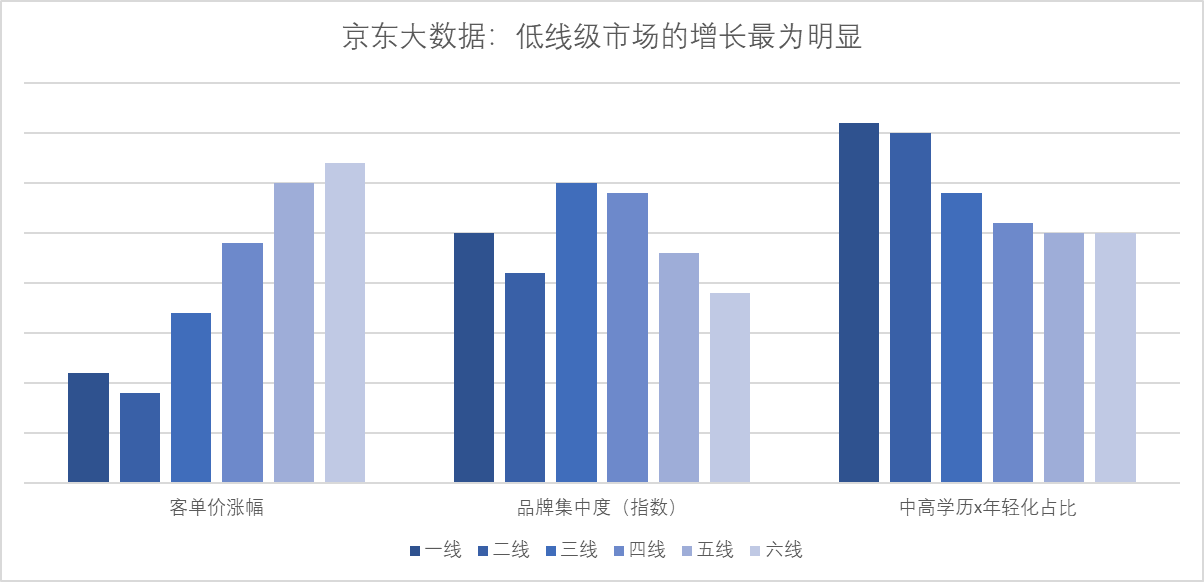 京東大數(shù)據(jù)從“客單價(jià)漲幅、品牌集中度、高學(xué)歷及年輕人占比”等指標(biāo)對(duì)1 -6線消費(fèi)者的月餅購買數(shù)據(jù)進(jìn)行分析發(fā)現(xiàn),京東月餅消費(fèi)者大學(xué)及以上學(xué)歷占比70%;90后用戶占比65%;中高消費(fèi)水平用戶占比98%;此外需要注意到中低線市場(chǎng)“小鎮(zhèn)”中等收入人群的崛起,這些年輕化、高學(xué)歷、懂品味的人群正在引導(dǎo)整體消費(fèi)市場(chǎng)從追求性價(jià)比到品牌、品味等更高追求的轉(zhuǎn)變。